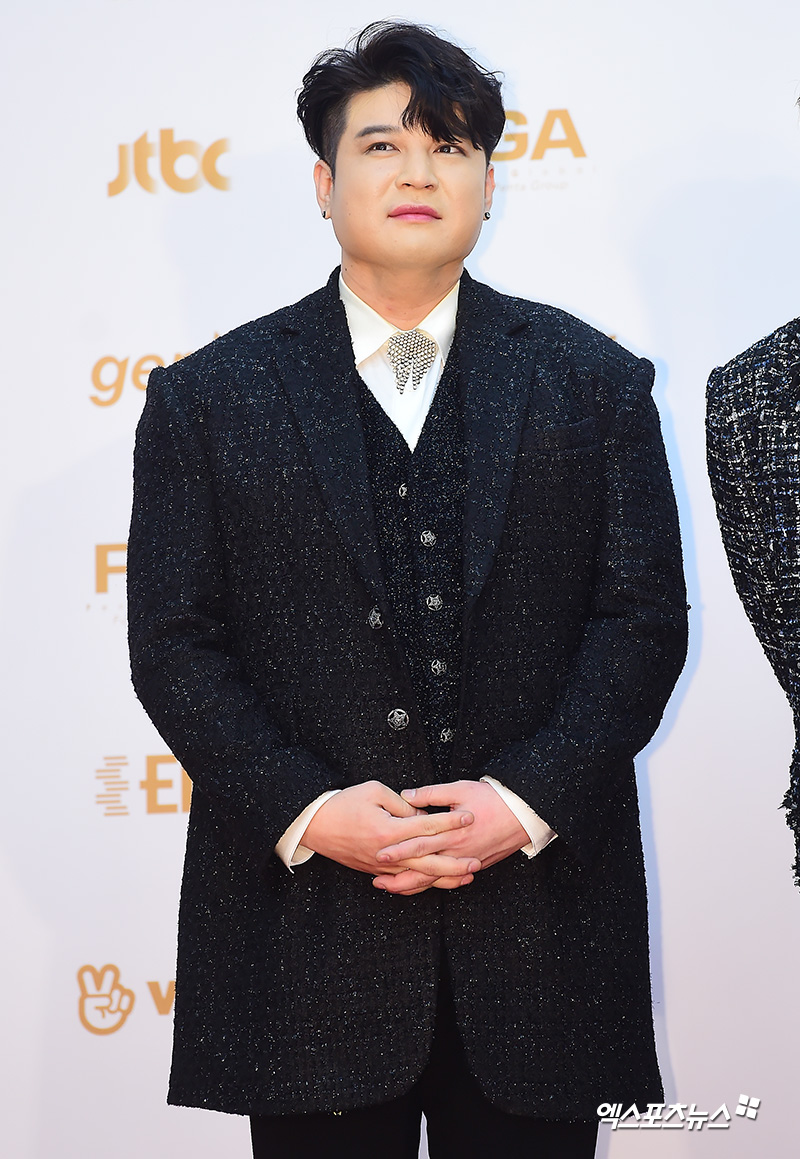 이날 음반 부문 시상식에 참석한 슈퍼주니어 신동이 포토타임을 갖고 있다.