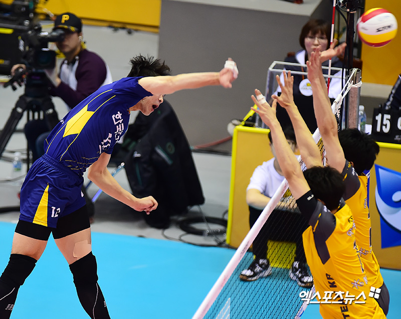 [엑스포츠뉴스 의정부, 김한준 기자] 12일 오후 경기도 의정부시 녹양동 의정부실내체육관에서  '2017-2018 도드람 V리그' KB손해보험과 한국전력의 남자부 경기가 열렸다.