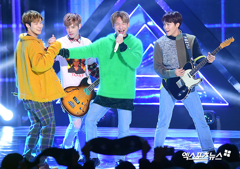 '더쇼'에 참석한 엔플라잉이 멋진 공연을 선보이고 있다.