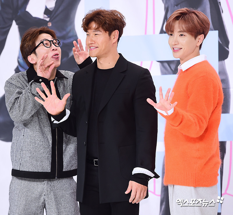 이날 '너의 목소리가 보여5' 제작발표회에 참석한 유세윤, 김종국, 이특이 포토타임을 갖고 있다.