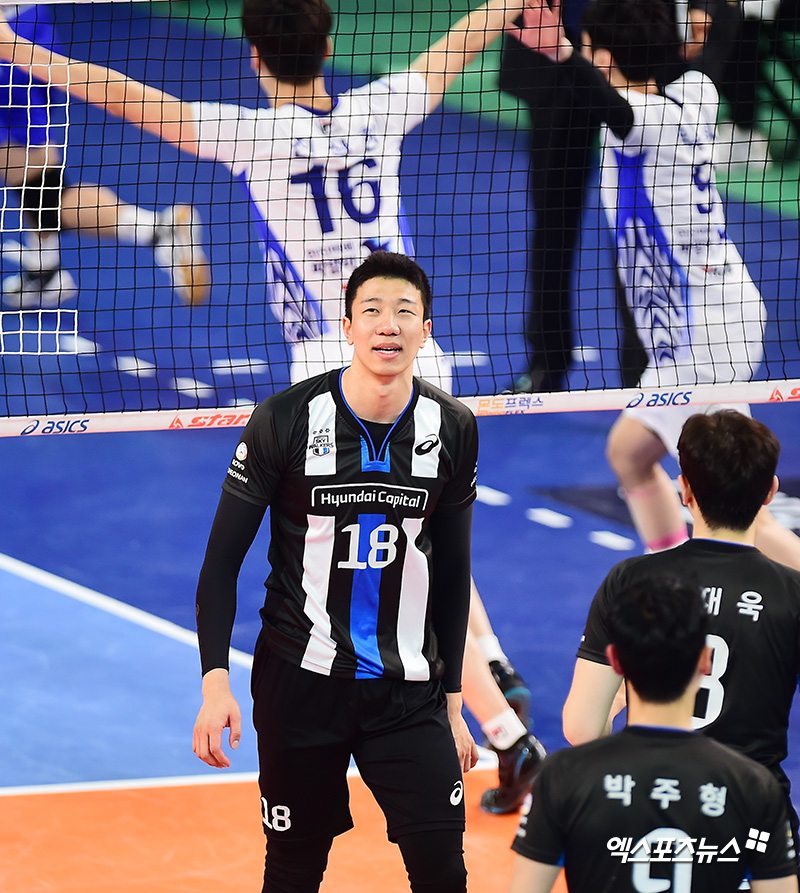 [엑스포츠뉴스 천안, 김한준 기자] 27일 오후 충청남도 천안유관순체육관에서 '2017-2018 도드람 V리그' 현대캐피탈과 대한항공의 남자부 경기가 열렸다.