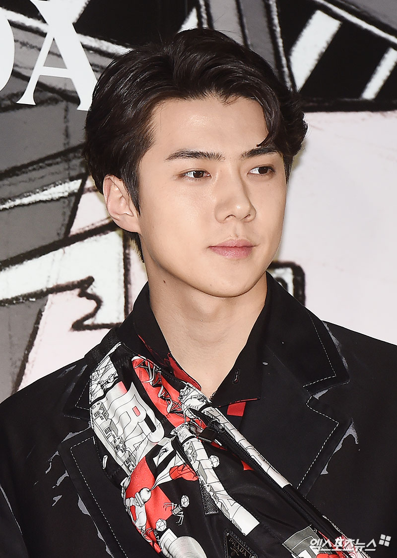 이날 행사에 참석한 엑소 세훈이 포토타임을 갖고 있다.