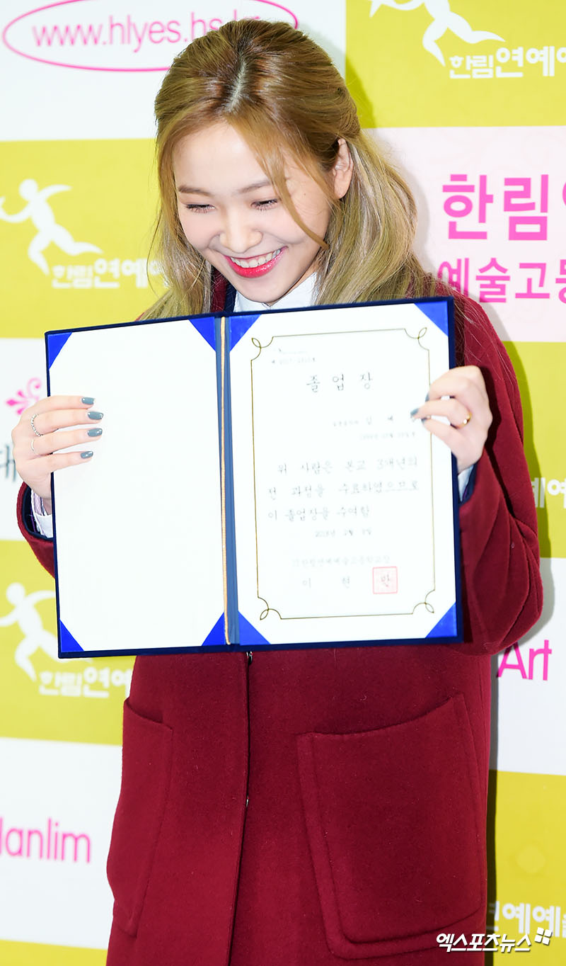 [엑스포츠뉴스 서예진 기자] 9일 오전 서울 장지동 한림예술고등학교 졸업식에 참석한 레드벨벳 예리가 포즈를 취하고 있다. yejin@xportsnews.com