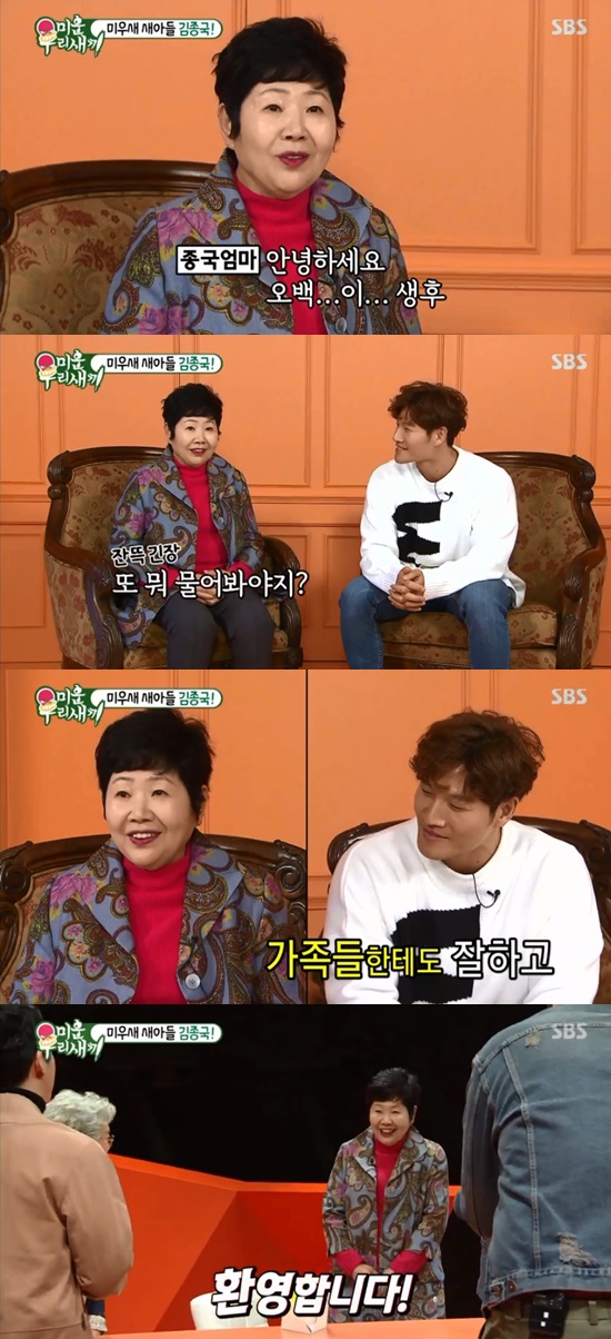 이날 김종국 어머니는 "노래도 잘하고 운동도 잘하고 가족들한테도 잘한다. 결혼을 못해서 미운 우리 새끼가 됐다"라며 출연 계기를 밝혔다.