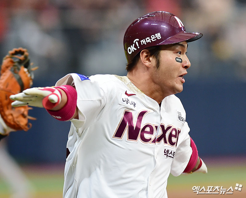 [엑스포츠뉴스 박지영 기자] 24일 오후 고척스카이돔에서 열린 '2018 신한은행 MY CAR KBO리그' 한화 이글스와 넥센 히어로즈의 개막전 경기, 4회말 2사 만루 넥센 박병호가 한화 3루수 실책으로 출루하며 1루에서 세이프를 어필하고 있다.