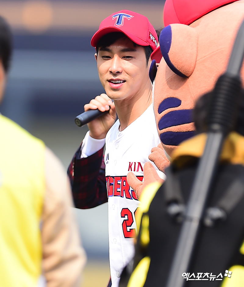 [엑스포츠뉴스 광주, 김한준 기자] 24일 오후 광주-기아 챔피언스필드에서 열린 '2018 신한은행 MY CAR KBO리그' kt 위즈와 KIA 타이거즈의 개막전 경기, 동방신기 유노윤호가 시구에 임하고 있다.
