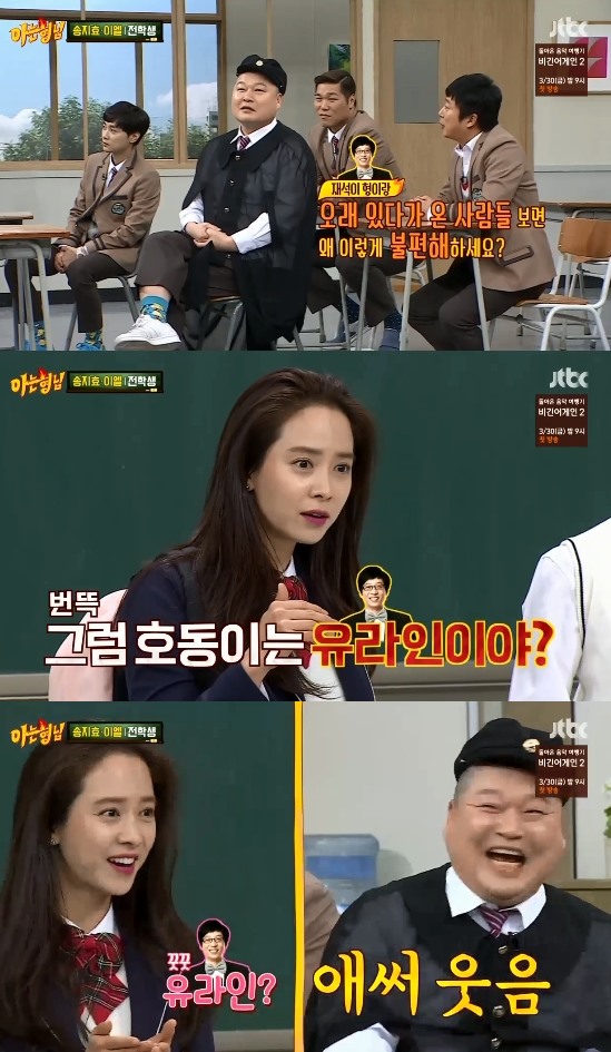 그러자 송지효는 "그럼 강호동은 유라인이냐"고 말해 웃음을 자아냈다.