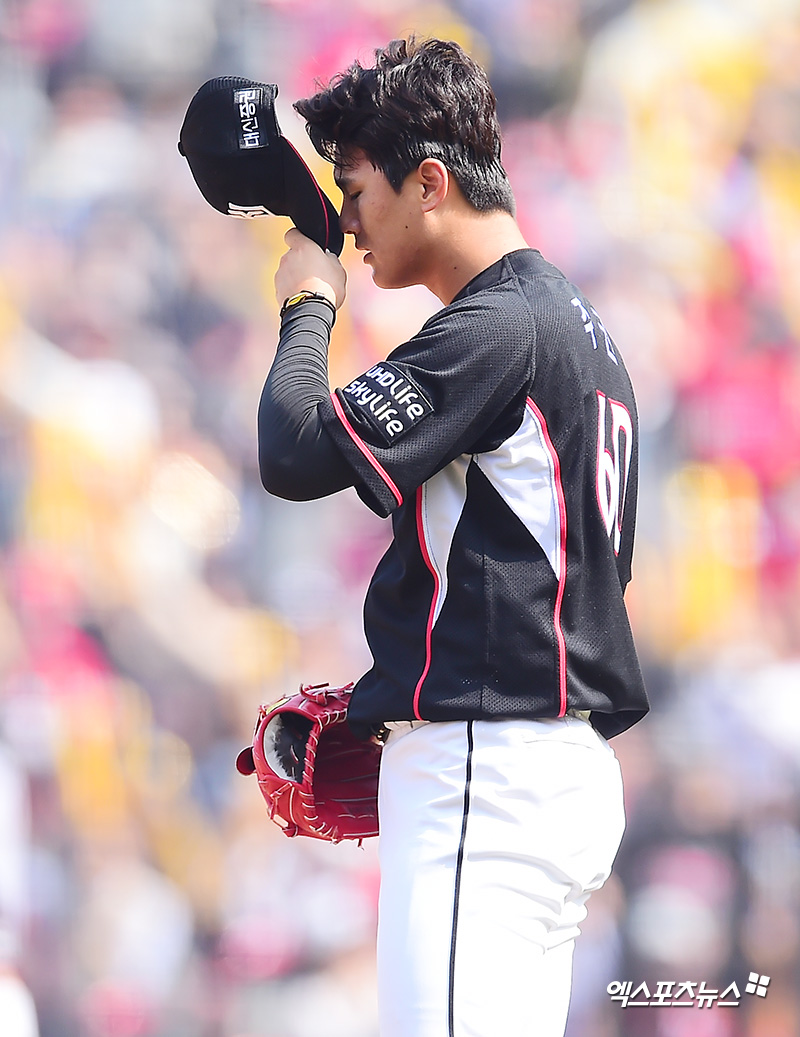 [엑스포츠뉴스 광주, 김한준 기자] 25일 오후 광주-기아 챔피언스필드에서 열린 '2018 신한은행 MY CAR KBO리그' kt 위즈와 KIA 타이거즈의 경기, 1회말 1사 1,2루 kt 선발투수 주권이 KIA 이범호에게 스리런 홈런을 허용한 후 아쉬워하고 있다.