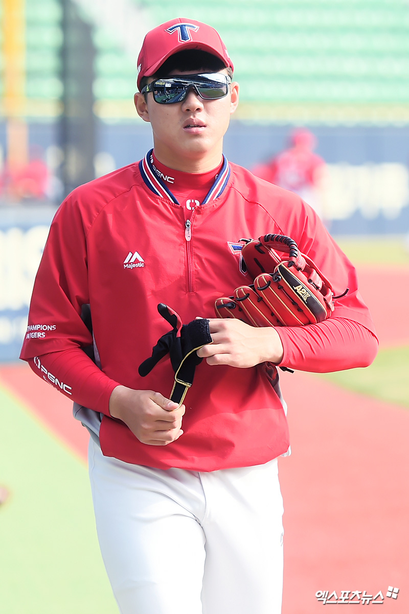 [엑스포츠뉴스 서예진 기자] 30일 오후 서울 송파구 잠실야구장에서 열리는 '2018 신한은행 MY CAR KBO리그' KIA 타이거즈와 LG 트윈스의 경기, KIA 최원준이 훈련을 하고 있다.