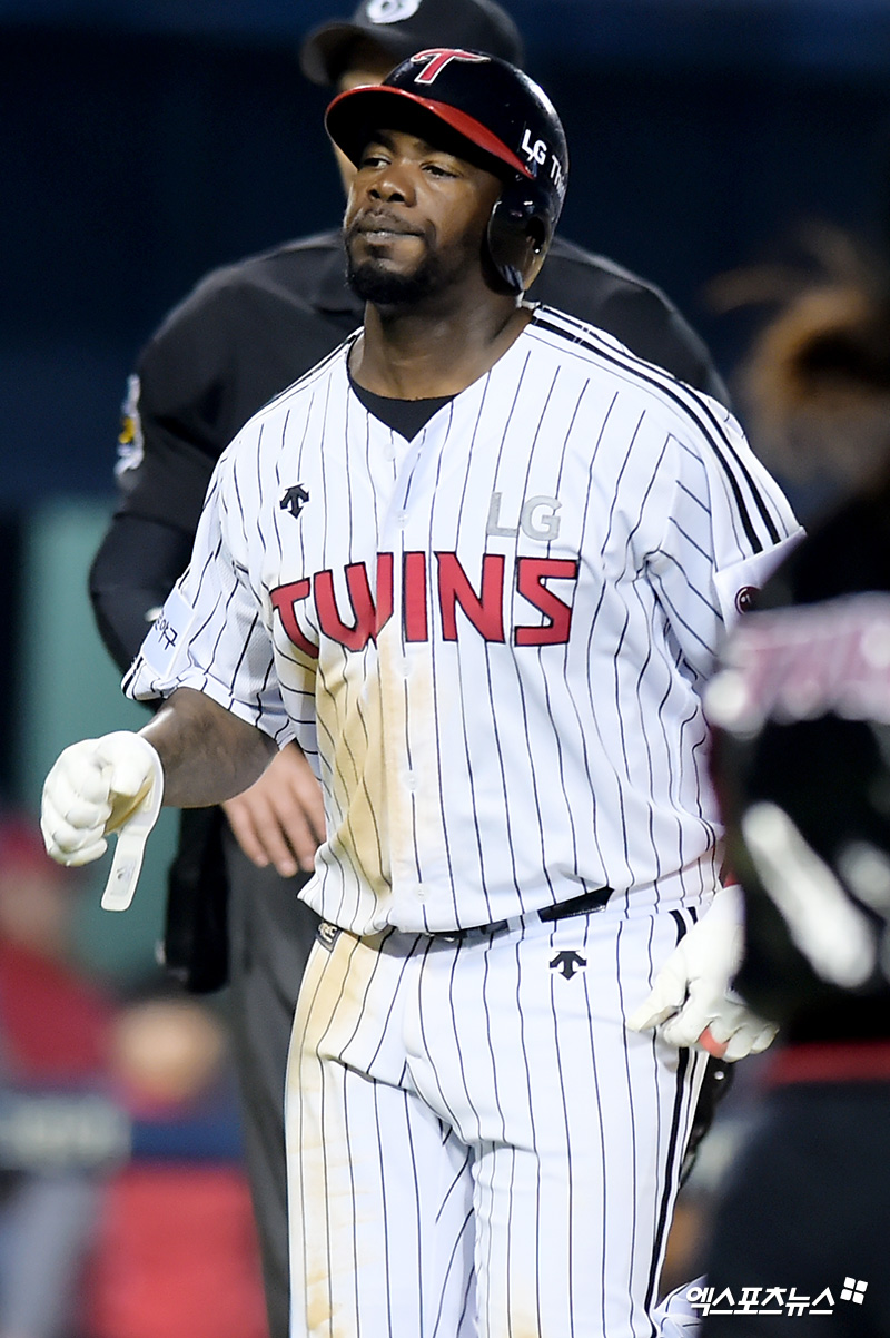 [엑스포츠뉴스 서예진 기자] 30일 오후 서울 송파구 잠실야구장에서 열린 '2018 신한은행 MY CAR KBO리그' KIA 타이거즈와 LG 트윈스의 경기, 8회말 1사 만루 LG 가르시아가 오지환의 밀어내기 볼넷 상황에서 득점하고 있다.