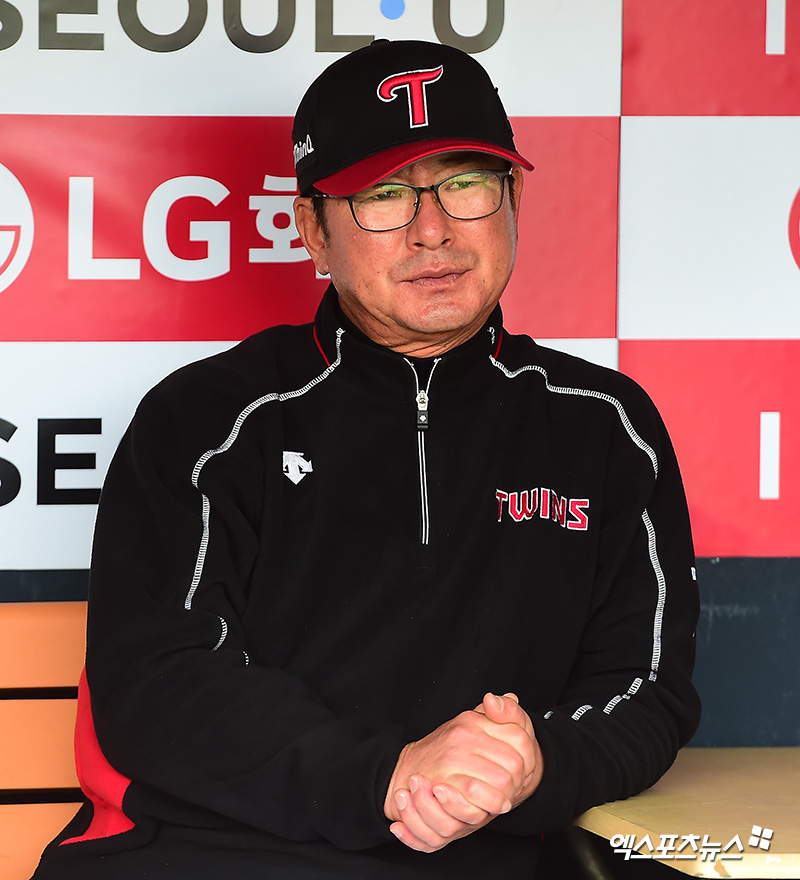 [엑스포츠뉴스 김한준 기자] 31일 오후 서울 송파구 잠실야구장에서 열리는 '2018 신한은행 MY CAR KBO리그' KIA 타이거즈와 LG 트윈스의 경기, LG 류중일 감독이 선수들의 훈련 모습을 지켜보고 있다.