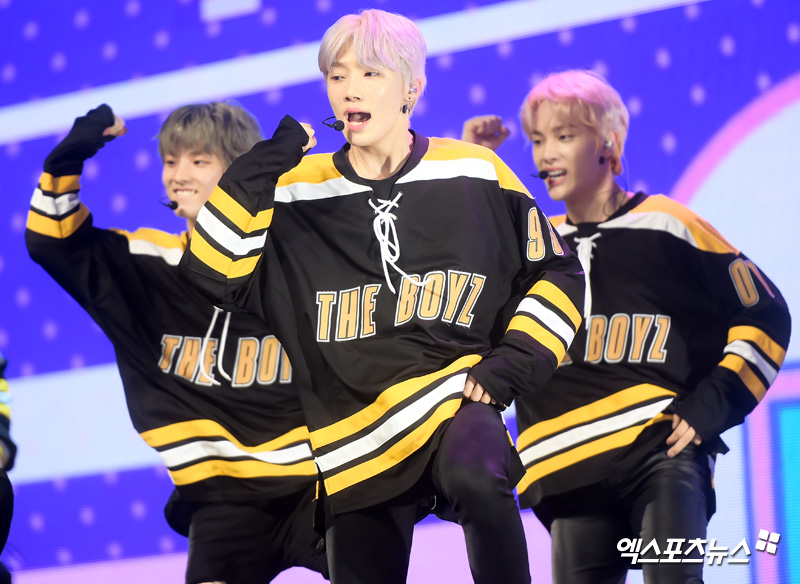이날 더보이즈가 멋진 무대를 선보이고 있다.