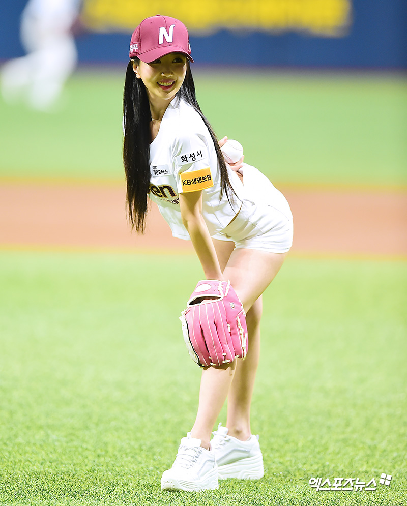 [엑스포츠뉴스 김한준 기자] 4일 오후 서울 구로구 고척스카이돔에서 열린 '2018 신한은행 MY CAR KBO리그' kt 위즈와 넥센 히어로즈의 경기, 블라블라 설화가 시구에 임하고 있다.