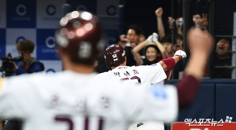 [엑스포츠뉴스 박지영 기자] 5일 오후 서울 구로구 고척스카이돔에서 열린 '2018 신한은행 MY CAR KBO리그' kt 위즈와 넥센 히어로즈의 경기, 넥센 히어로즈가 연장 10회 접전 박병호의 끝내기로 4:3의 스코어로 kt 위즈에게 승리를 거두며 위닝 시리즈를 가져갔다.