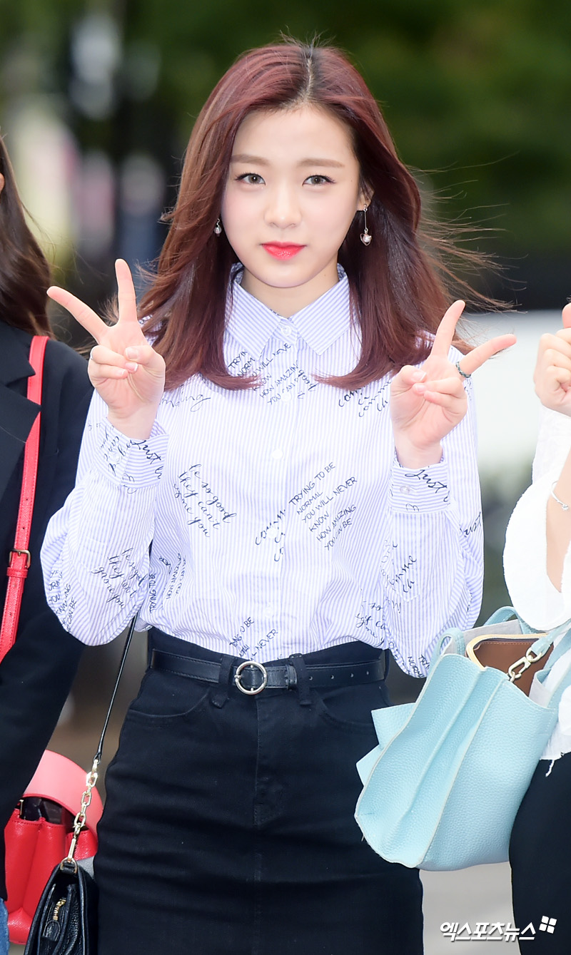 [엑스포츠뉴스 서예진] 6일 오전 서울 여의도동 KBS 신관 공개홀에서 진행된 KBS '뮤직뱅크' 리허설에서 에이프릴 진솔이 포토타임을 갖고 있다.