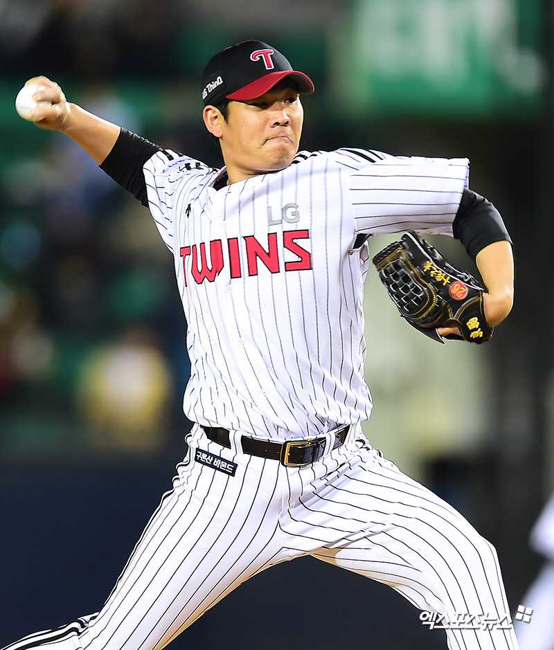 [엑스포츠뉴스 김한준 기자] 11일 오후 서울 송파구 잠실야구장에서 열린 '2018 신한은행 MY CAR KBO리그' SK 와이번스와 LG 트윈스의 경기, 9회초 LG 정찬헌이 공을 힘차게 던지고 있다.