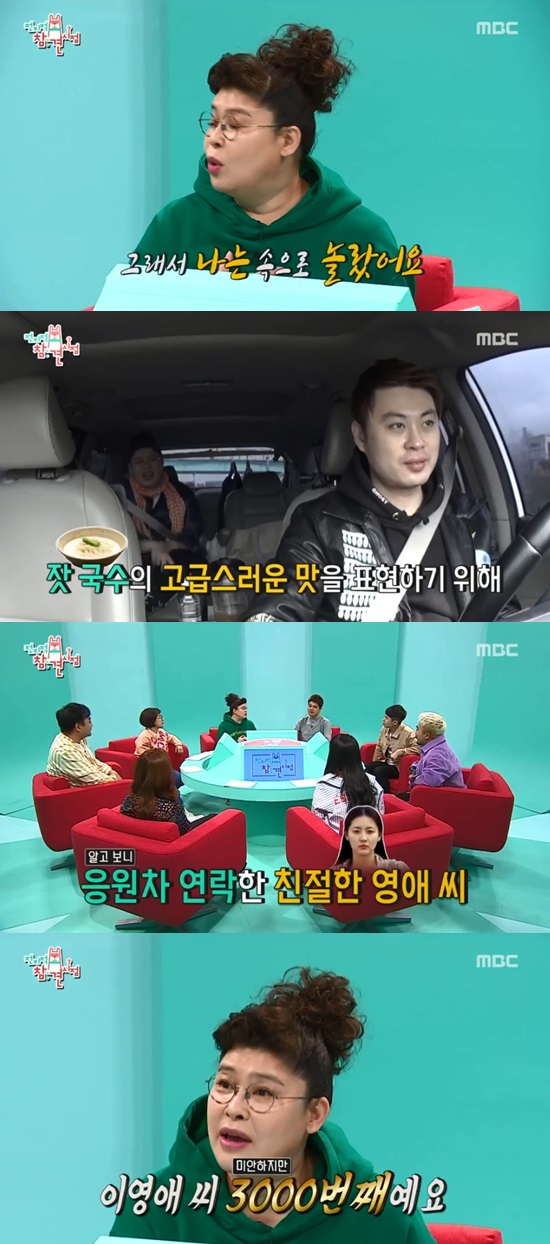 이에 이영자는 "이영애 씨에게 전화가 왔다. 내가 잣 국수를 이영애로 표현하고 콩국수를 이영자로 표현한 게 걸렸나 싶었다. 잣을 고급스럽게 표현하려고 그런 거였다. 되게 떨었다"라며 털어놨다.