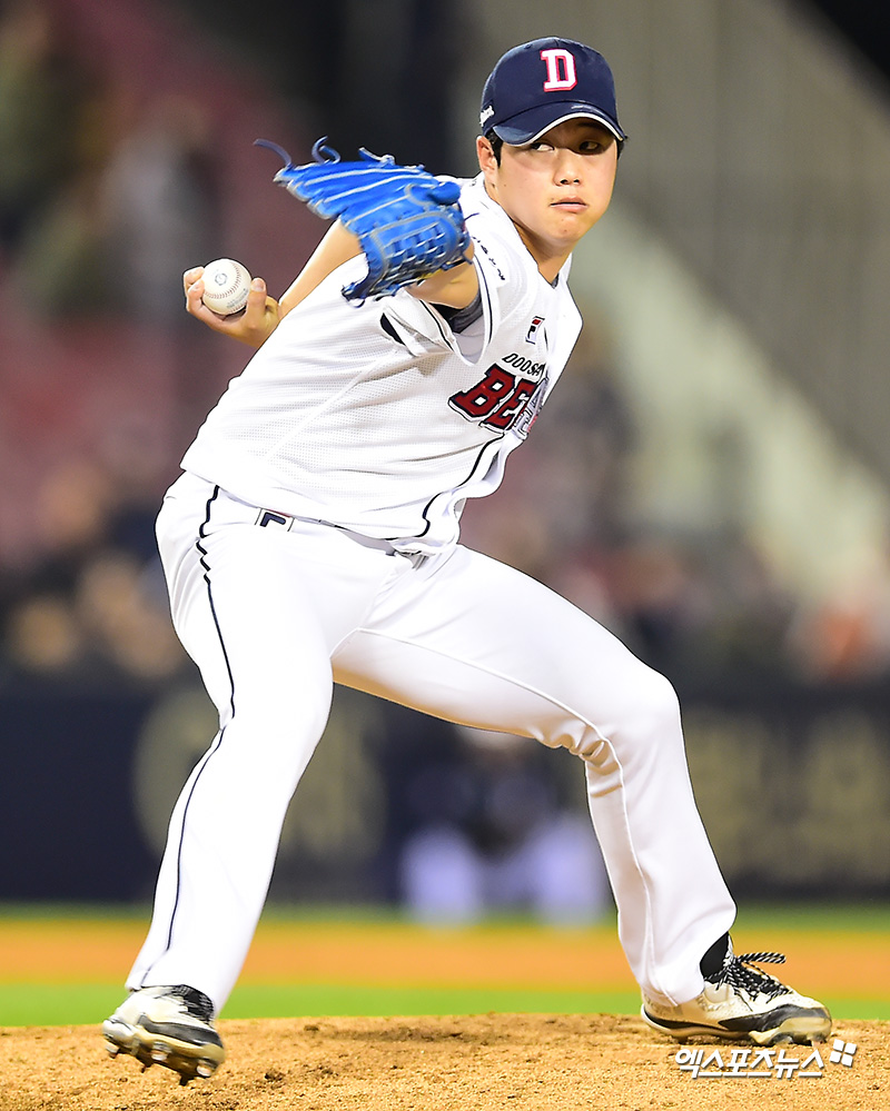 [엑스포츠뉴스 김한준 기자] 19일 오후 서울 송파구 잠실야구장에서 열린 '2018 신한은행 MY CAR KBO리그' 한화 이글스와 두산 베어스의 경기, 8회초 두산 함덕주가 공을 힘차게 던지고 있다.