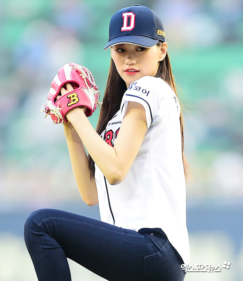 [엑스포츠뉴스 김한준 기자] 20일 오후 서울 송파구 잠실야구장에서 열린 '2018 신한은행 MY CAR KBO리그' KIA 타이거즈와 두산 베어스의 경기, 위키미키 김도연이 시구에 임하고 있다.