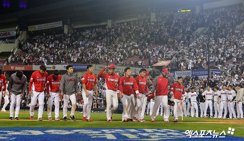 경기종료 후 KIA 선수들이 그라운드를 빠져나가고 있다.