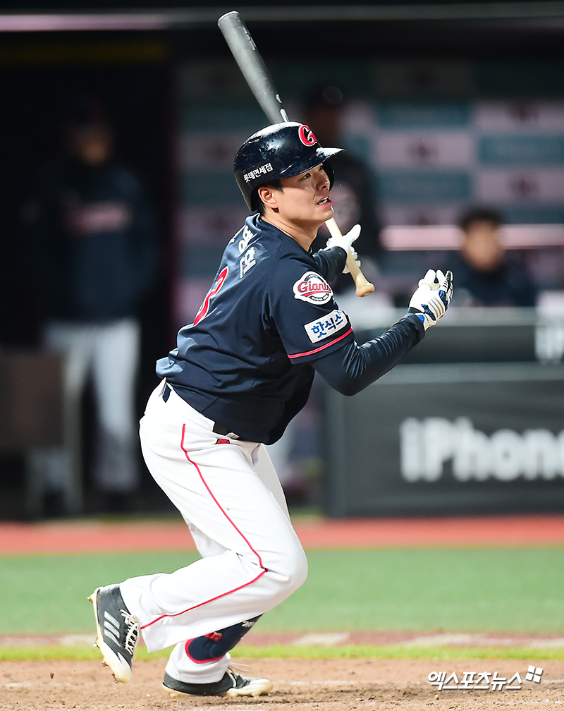 [엑스포츠뉴스 수원, 김한준 기자] 24일 오후 경기도 수원시 장안구 수원kt위즈파크에서 열린 '2018 신한은행 MY CAR KBO리그 롯데 자이언츠와 kt 위즈의 경기, 5회초 롯데 민병헌이 우전안타를 날리고 있다.