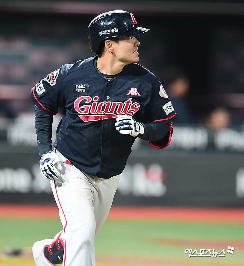 [엑스포츠뉴스 수원, 김한준 기자] 24일 오후 경기도 수원시 장안구 수원kt위즈파크에서 열린 '2018 신한은행 MY CAR KBO리그 롯데 자이언츠와 kt 위즈의 경기, 5회초 2사 롯데 민병헌이 솔로 홈런을 날린 후 그라운드를 돌고 있다.