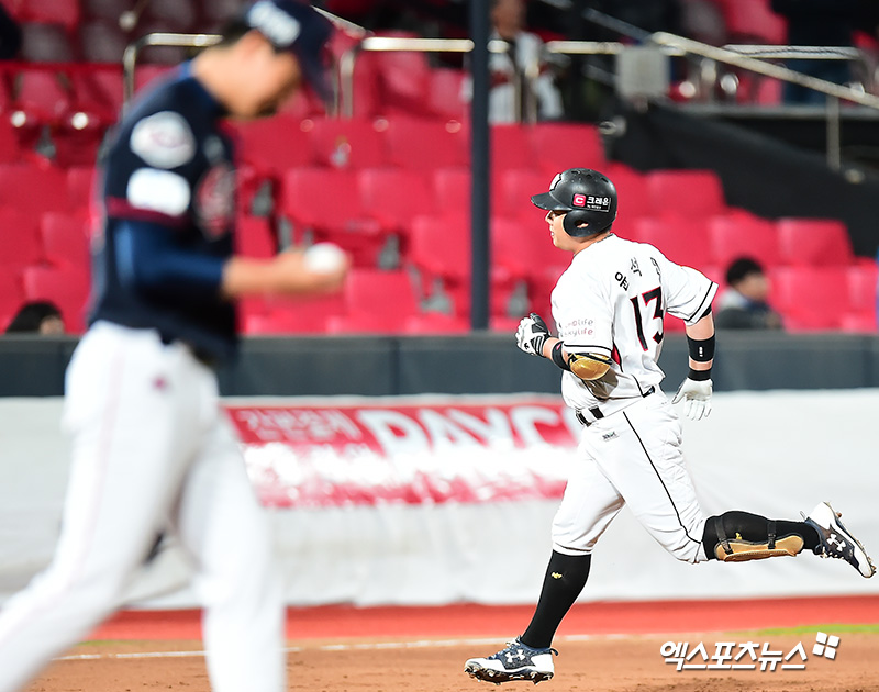 [엑스포츠뉴스 수원, 김한준 기자] 24일 오후 경기도 수원시 장안구 수원kt위즈파크에서 열린 '2018 신한은행 MY CAR KBO리그 롯데 자이언츠와 kt 위즈의 경기, 5회말 2사 만루 kt 윤석민이 만루 홈런을 날린 후 그라운드를 돌고 있다.