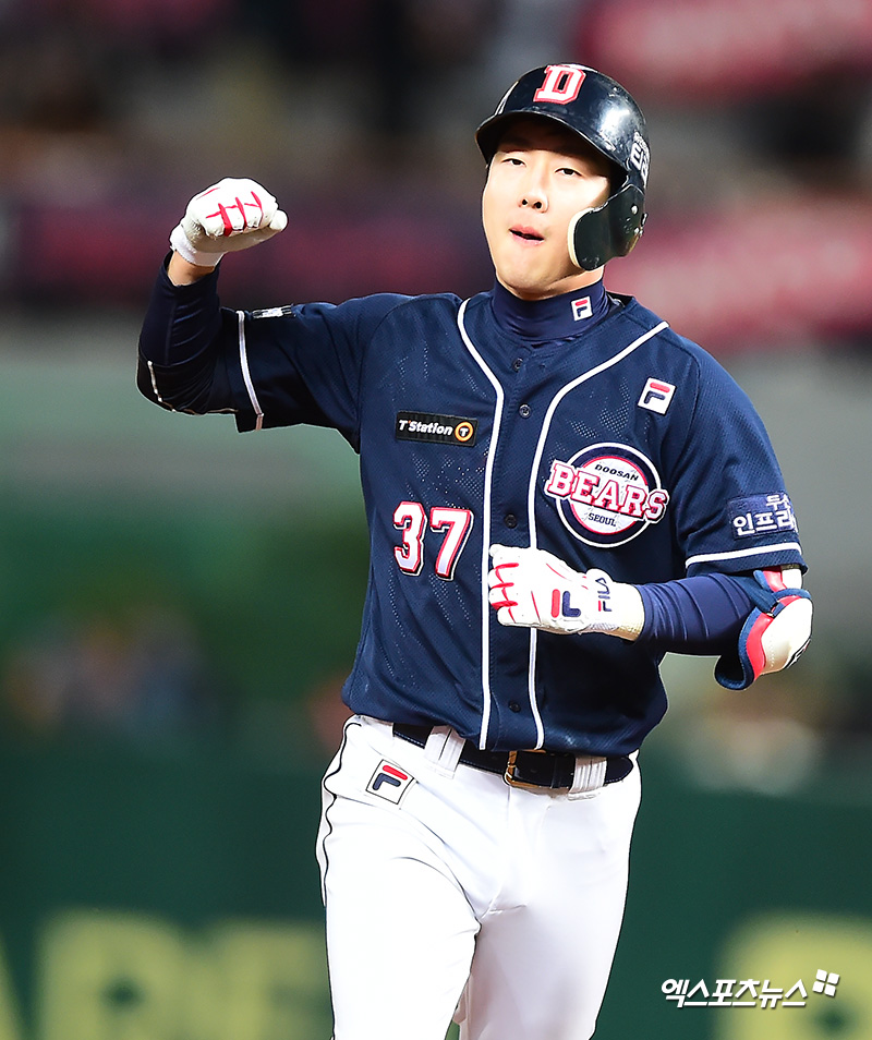 [엑스포츠뉴스 인천, 김한준 기자] 25일 오후 인천SK행복드림구장에서 열린 '2018 신한은행 MY CAR KBO리그' 두산 베어스와 SK 와이번스의 경기, 9회초 무사 2루 두산 박건우가 투런 홈런을 날린 후 그라운드를 돌고 있다.