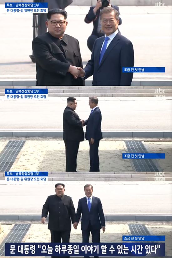 한편 27일, 2018 남북정상회담은 오전 9시 30분 판문점 군사분계선에서 역사적인 첫 만남을 가졌다. 이후 오전 10시 30분부터 정상회담을 시작했다.
