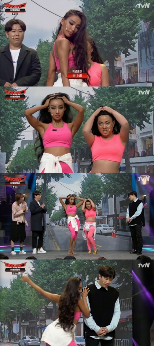 문가비는 29일 방송된 tvN '코미디 빅리그'의 '이별여행사' 코너에 특별 출연, 박나래의 쌍둥이 여동생으로 분했다.