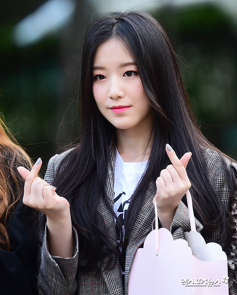 [엑스포츠뉴스 김한준 기자] 4일 오전 서울 여의도동 KBS 신관 공개홀에서 진행된 KBS '뮤직뱅크' 리허설에서 (여자)아이들 슈화가 포토타임을 갖고 있다.