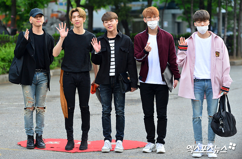 [엑스포츠뉴스 김한준 기자] 4일 오전 서울 여의도동 KBS 신관 공개홀에서 진행된 KBS '뮤직뱅크' 리허설에서 임팩트가 포토타임을 갖고 있다.