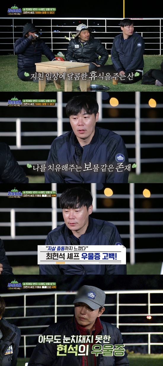 최현석은 출연자들과 등산을 하며 찍은 사진을 함께 보던 중에 “14년 동안 요리사를 하면서 매일 메뉴를 바꿀 정도로 열심히 살았다. 그런데 열심히 산 게 정답은 아니었던 것 같다“며 우울증을 겪었던 사실을 털어놓는다. 그는 “요리를 하다 말고 한 곳만 50분 동안 쳐다본 적도 있다”고 덧붙여 모두를 놀라게 한다.