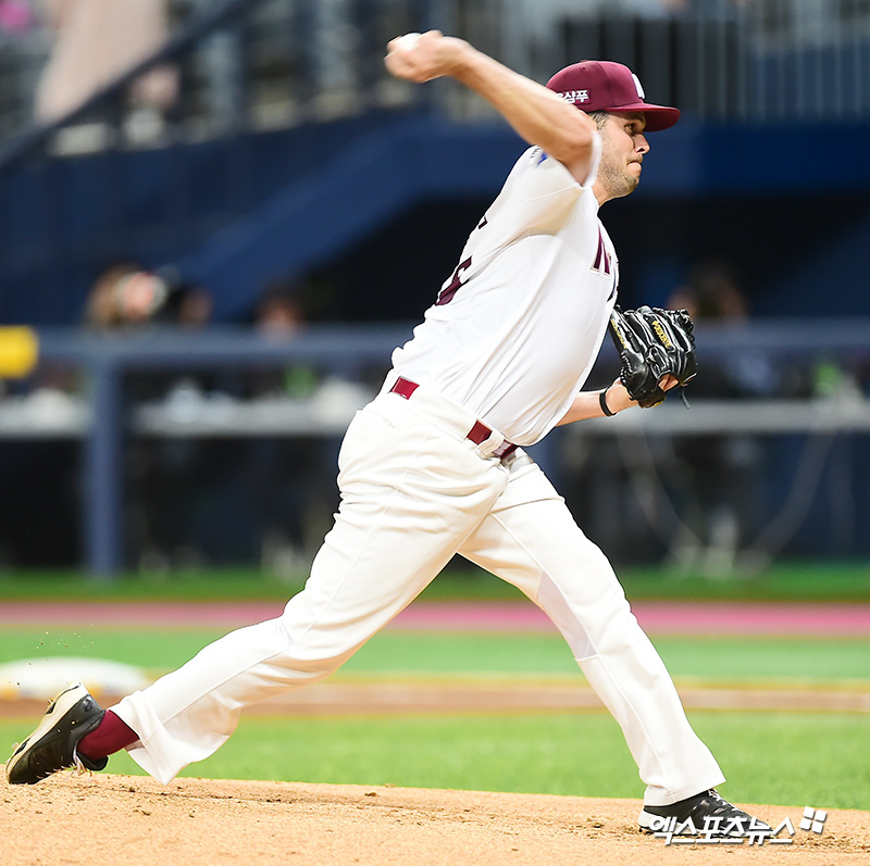 [엑스포츠뉴스 고척, 김한준 기자] 8일 오후 서울 구로구 고척스카이돔에서 열린 '2018 신한은행 MY CAR KBO리그' 한화 이글스와 넥센 히어로즈의 경기, 2회초 넥센 선발투수 브리검이 공을 힘차게 던지고 있다.