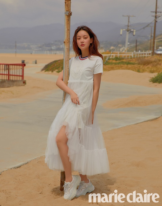 오연서는 21일 공개된 패션 매거진 마리끌레르 6월호 화보를 통해 몽환적이면서도 무심한 표정으로 색다른 매력을 발산했다. 최근 미국 LA에서 진행된 이번 화보 속 오연서는 화이트 레이스 드레스와 스니커즈를 믹스해 자신만의 세련된 믹스매치 스타일링을 보여줬다.