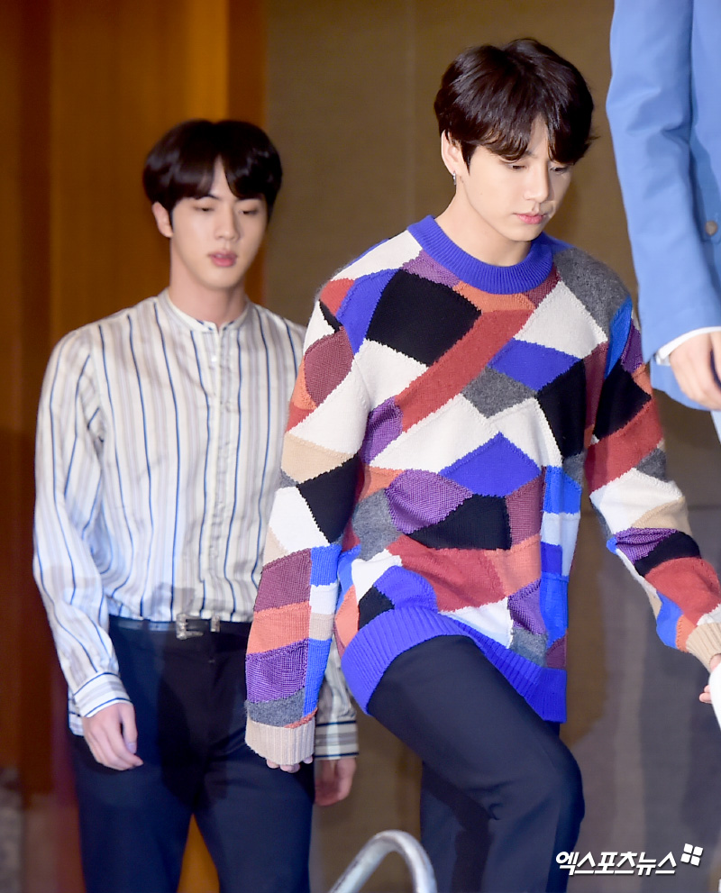 이날 방탄소년단 진, 정국이 포토타임을 갖기 위해 입장하고 있다.