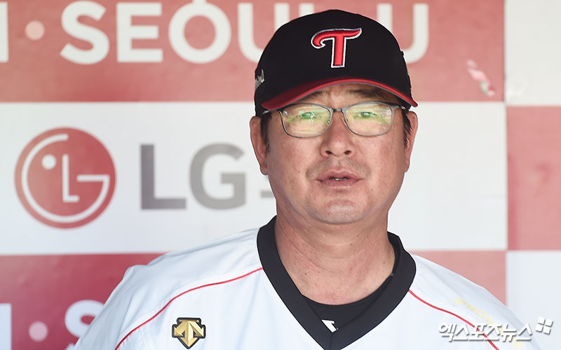 취재진과 이야기 나누는 LG 류중일 감독[포토]