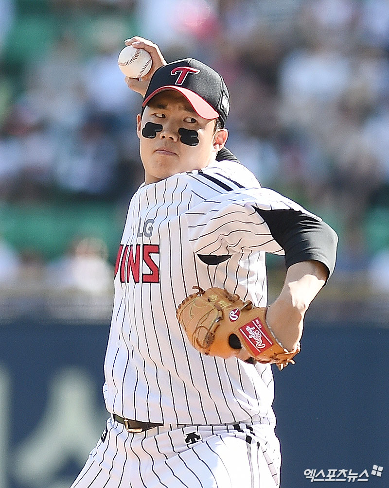 [엑스포츠뉴스 박지영 기자] 2일 오후 서울 송파구 잠실야구장에서 열린 '2018 신한은행 MY CAR KBO리그' 넥센 히어로즈와 LG 트윈스의 경기, 1회초 무사 LG 선발투수 임찬규가 역투하고 있다.
