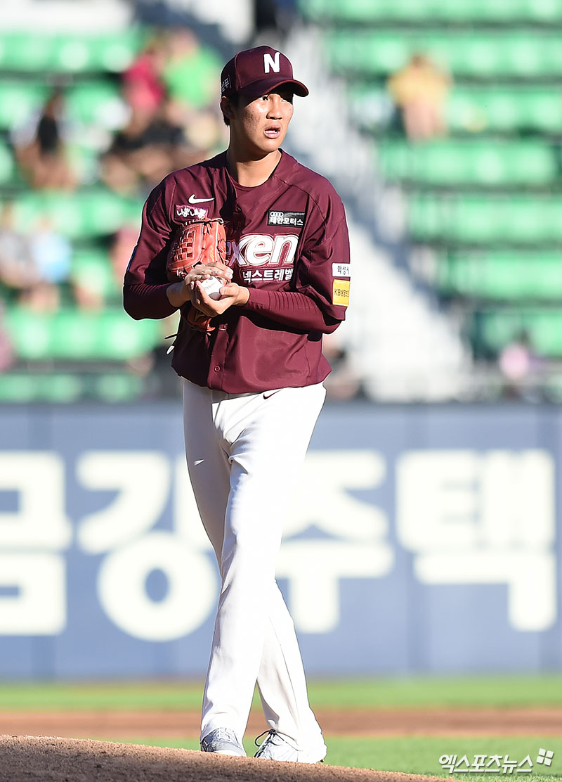 [엑스포츠뉴스 잠실, 박지영 기자] 2일 오후 서울 송파구 잠실야구장에서 열린 '2018 신한은행 MY CAR KBO리그' 넥센 히어로즈와 LG 트윈스의 경기, 3회말 2사 1,2루 넥센 선발투수 안우진이 LG 유강남을 몸에 맞는 볼로 출루시키며 만루 위기가 되자 아쉬워하고 있다.