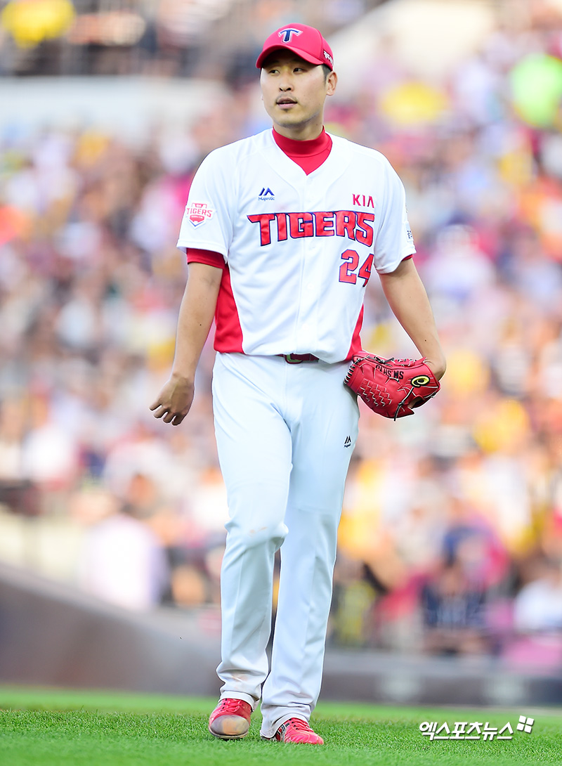 [엑스포츠뉴스 광주, 김한준 기자] 2일 오후 광주-기아 챔피언스필드에서 열린 '2018 신한은행 MY CAR KBO리그' 두산 베어스와 KIA 타이거즈의 경기, 5회초 2사 1,3루 KIA 선발투수 윤석민이 마운드를 내려오고 있다.