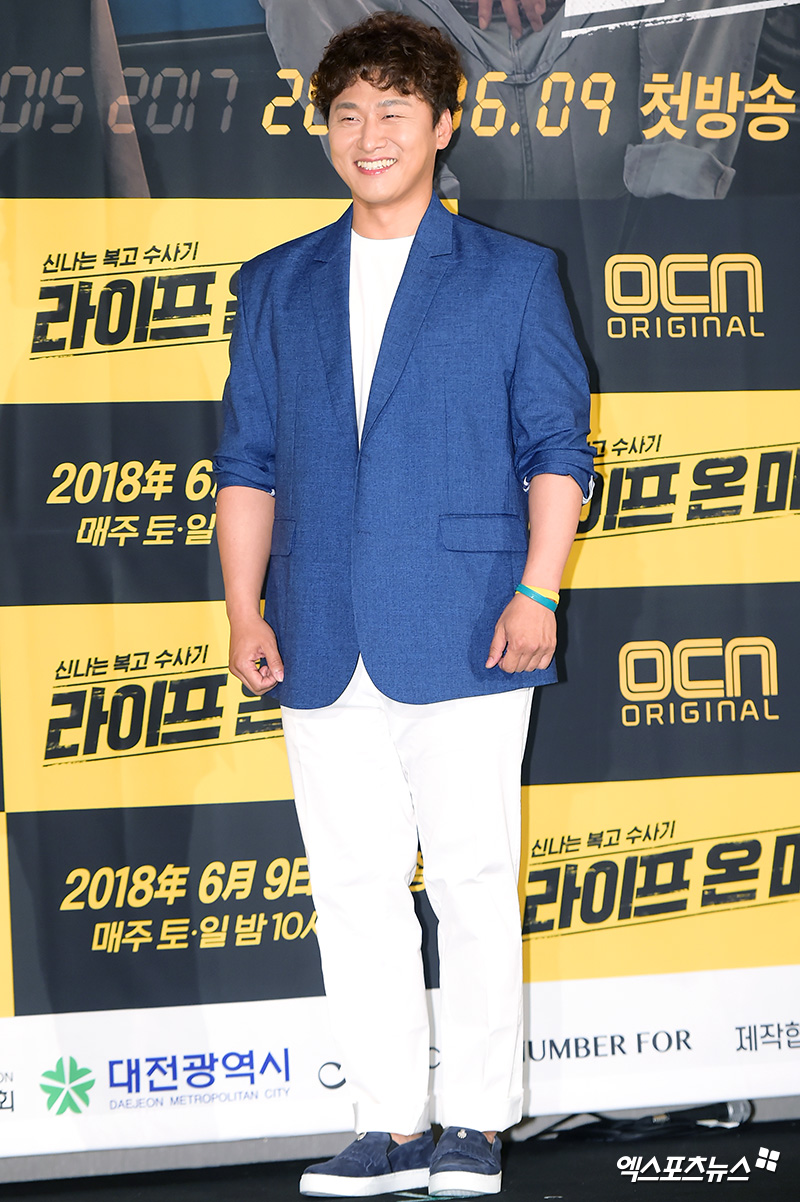 ​​[엑스포츠뉴스 서예진 기자] 5일 오후 서울 여의도 콘래드 호텔에서 진행된 OCN 드라마 '라이프 온 마스' 제작발표회에 참석한 오대환이 포토타임을 갖고 있다.