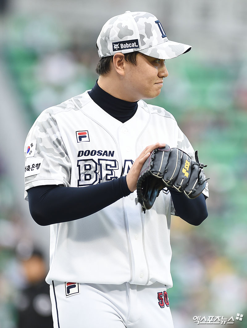 [엑스포츠뉴스 잠실, 박지영 기자] 9일 오후 서울 송파구 잠실야구장에서 열린 '2018 신한은행 MY CAR KBO리그' NC 다이노스와 두산 베어스의 경기, 3회초 2사 1,2루 두산 선발투수 이영하가 NC 나성범을 2루수 땅볼로 처리하며 이닝 종료시킨 뒤 수비진을 향해 박수를 보내고 있다.