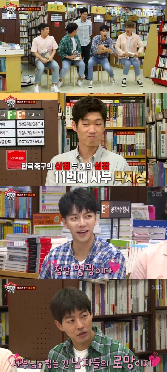 이어 사부가 제자들의 뒤에서 등장했다. '영원한 캡틴' 박지성이었다. 이승기는 "어렸을 때부터 사부님의 활약을 함께 해왔기 때문에 (너무 영광이다)"라고 감격했다. 이상윤은 "사부님을 뵙는 건 남자들의 로망 아니냐"라고 공감했다.