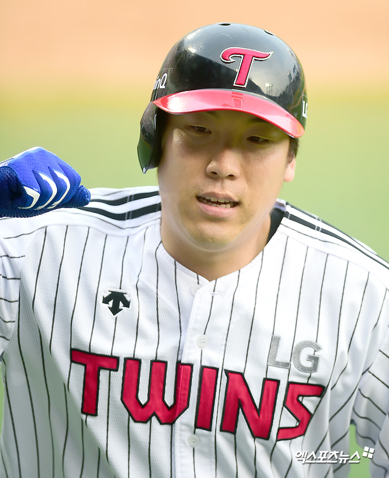 [엑스포츠뉴스 잠실, 김한준 기자] 23일 오후 서울 송파구 잠실야구장에서 열린 '2018 신한은행 MY CAR KBO리그' 롯데 자이언츠와 LG 트윈스의 경기, 3회말 2사 LG 김현수가 솔로 홈런을 날린 후 그라운드를 돌고 있다.