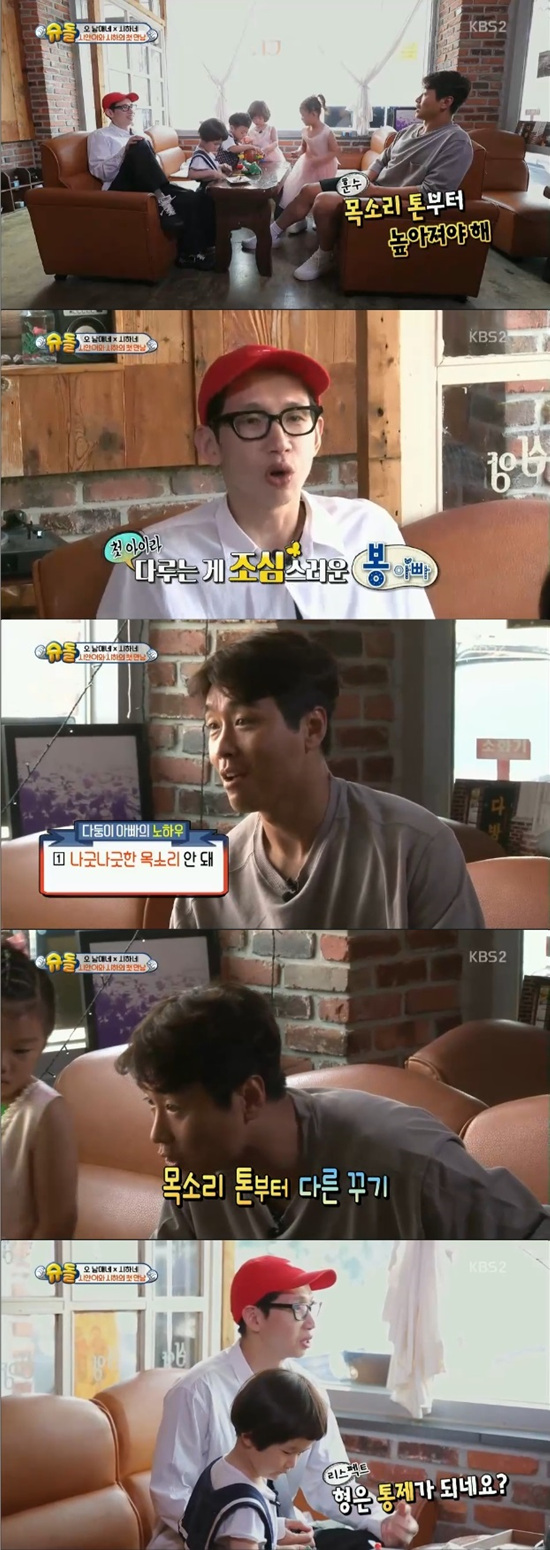 이날 이동국과 삼남매는 전주를 찾은 봉태규-시하 부자와 만나게 됐다. 이동국은 봉태규가 시하를 대하는 말투를 보고 노하우 전수에 돌입했다.