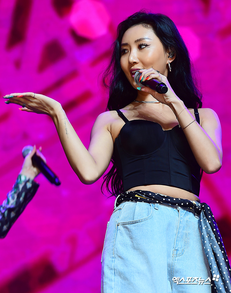 ​[엑스포츠뉴스 김한준 기자] 16일 오후 서울 광장동 예스24라이브홀에서 열린 마마무 일곱 번째 미니앨범 '레드 문(Red Moon)' 쇼케이스에 참석한 마마무 화사가 멋진 공연을 선보이고 있다.