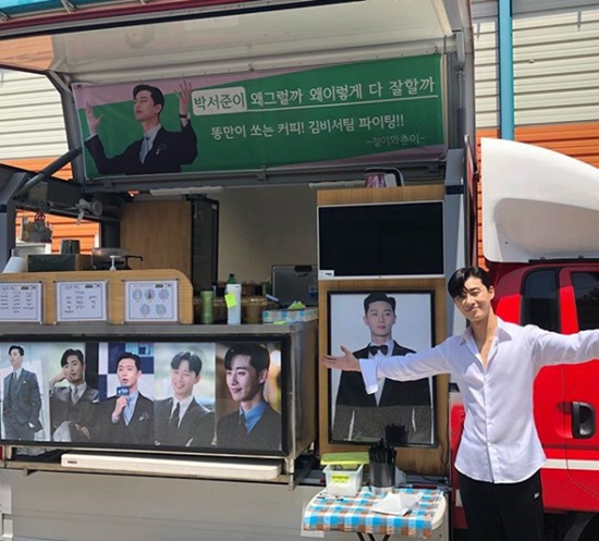 [엑스포츠뉴스 유은영 기자] 배우 박서준이 이나정 PD, 임상춘 작가로부터 커피차를 선 물받았다.