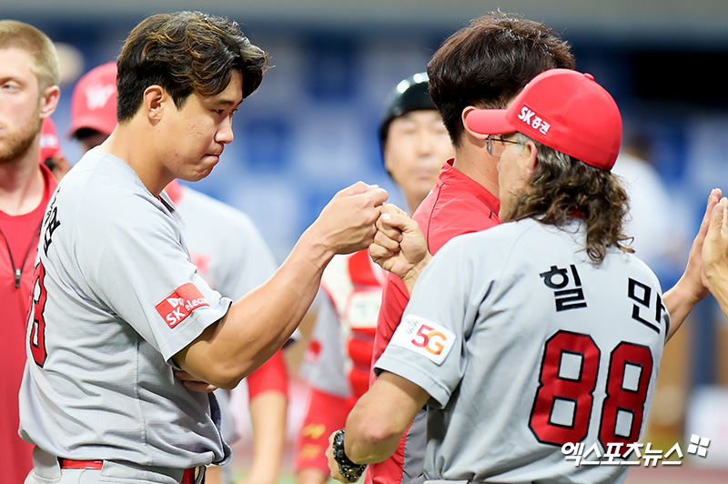 [엑스포츠뉴스 부산, 조은혜 기자] SK 와이번스 김동엽이 홈런 포함 3안타로 팀의 승리를 이끌었다.