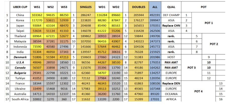 배드민턴 전문 매체 '트래커 MS/WS'는 15일(한국시간) 사회관계망서비스(SNS)를 통해 "우버컵의 모든 포트가 확정됐다"라고 발표했다.