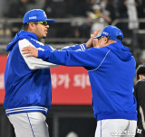박진만 감독 ‘강민호를 격려하며’[포토]